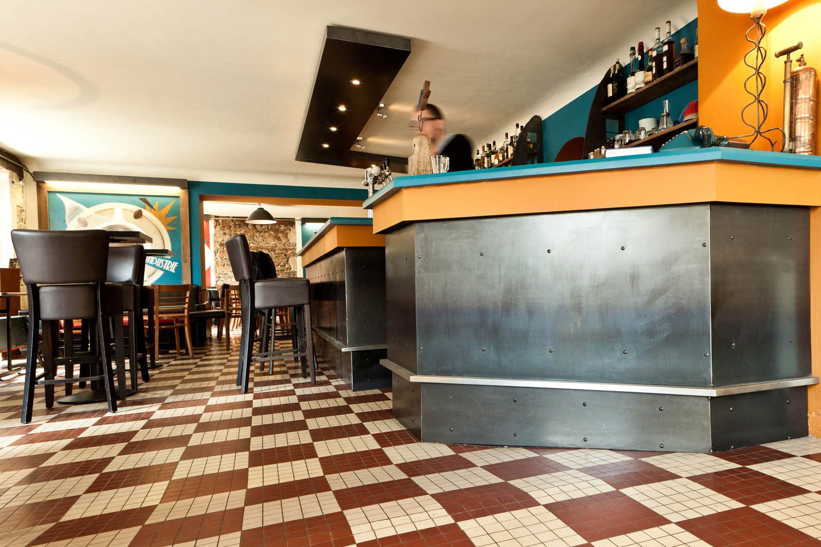 Commerces, bars et boutiques, les usages nourrissent les aménagements : pare-soleil, présentoirs en tubes, étagères en tôle pliée…