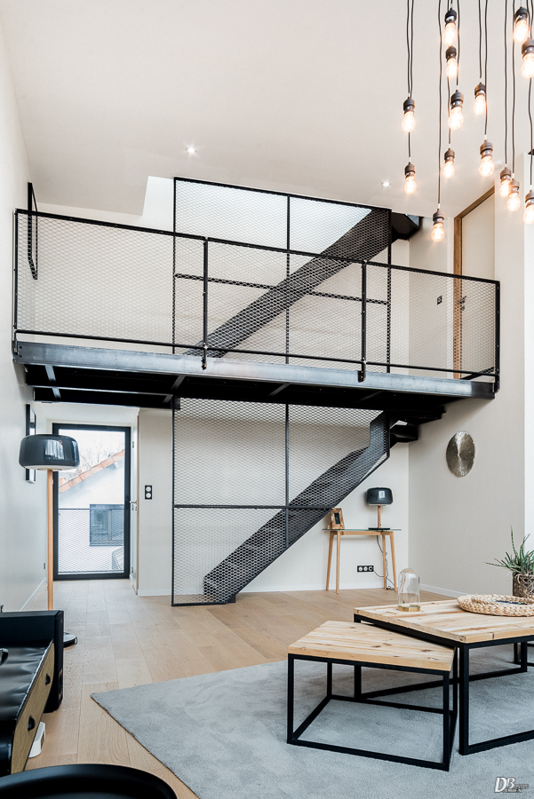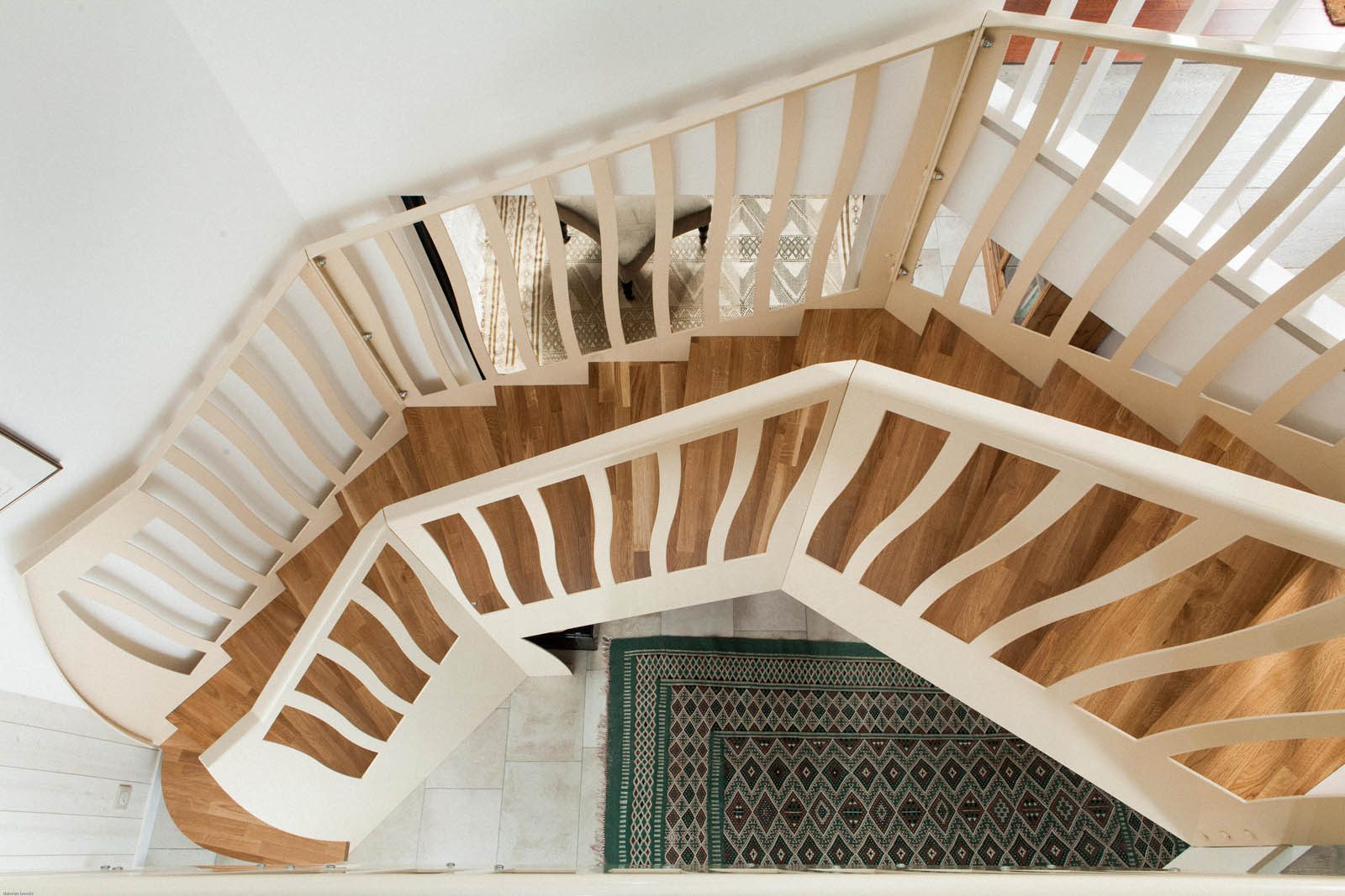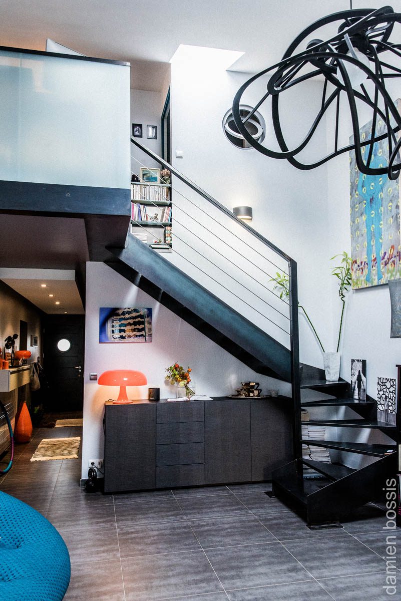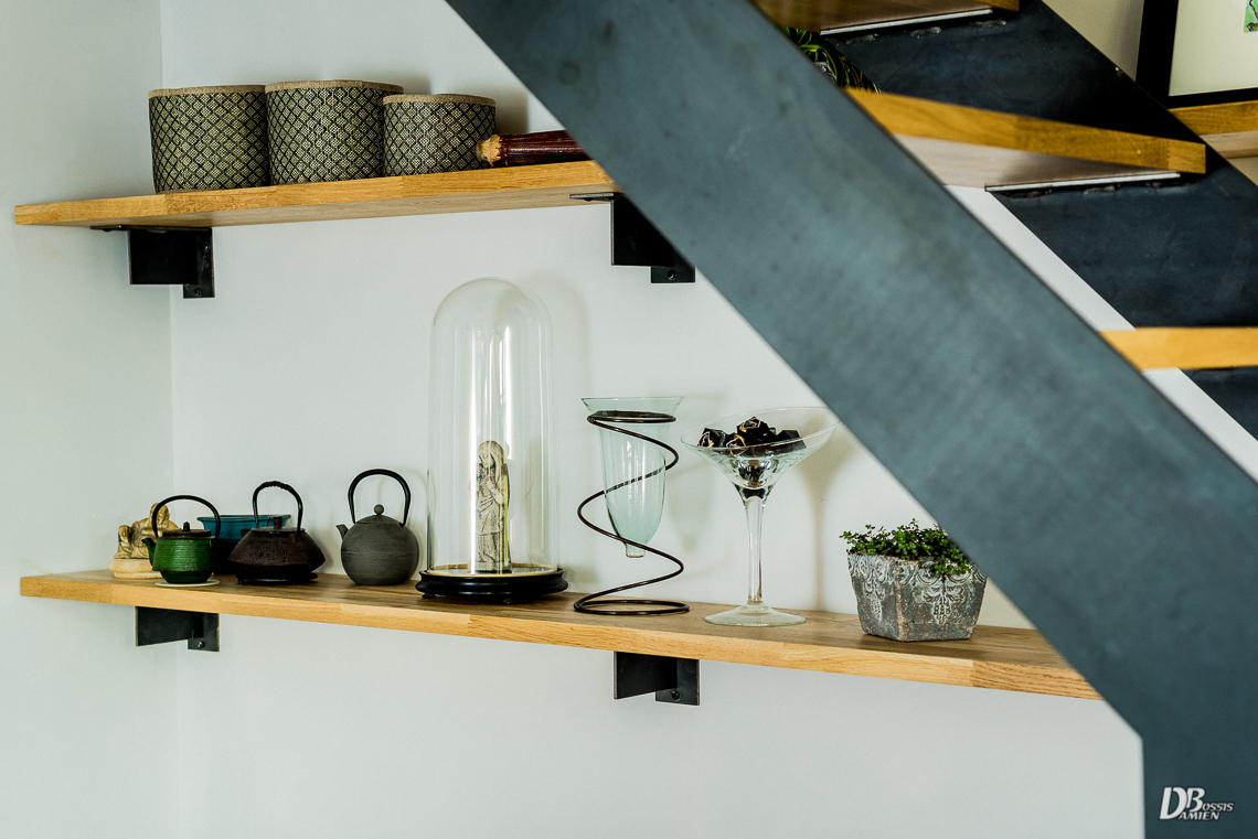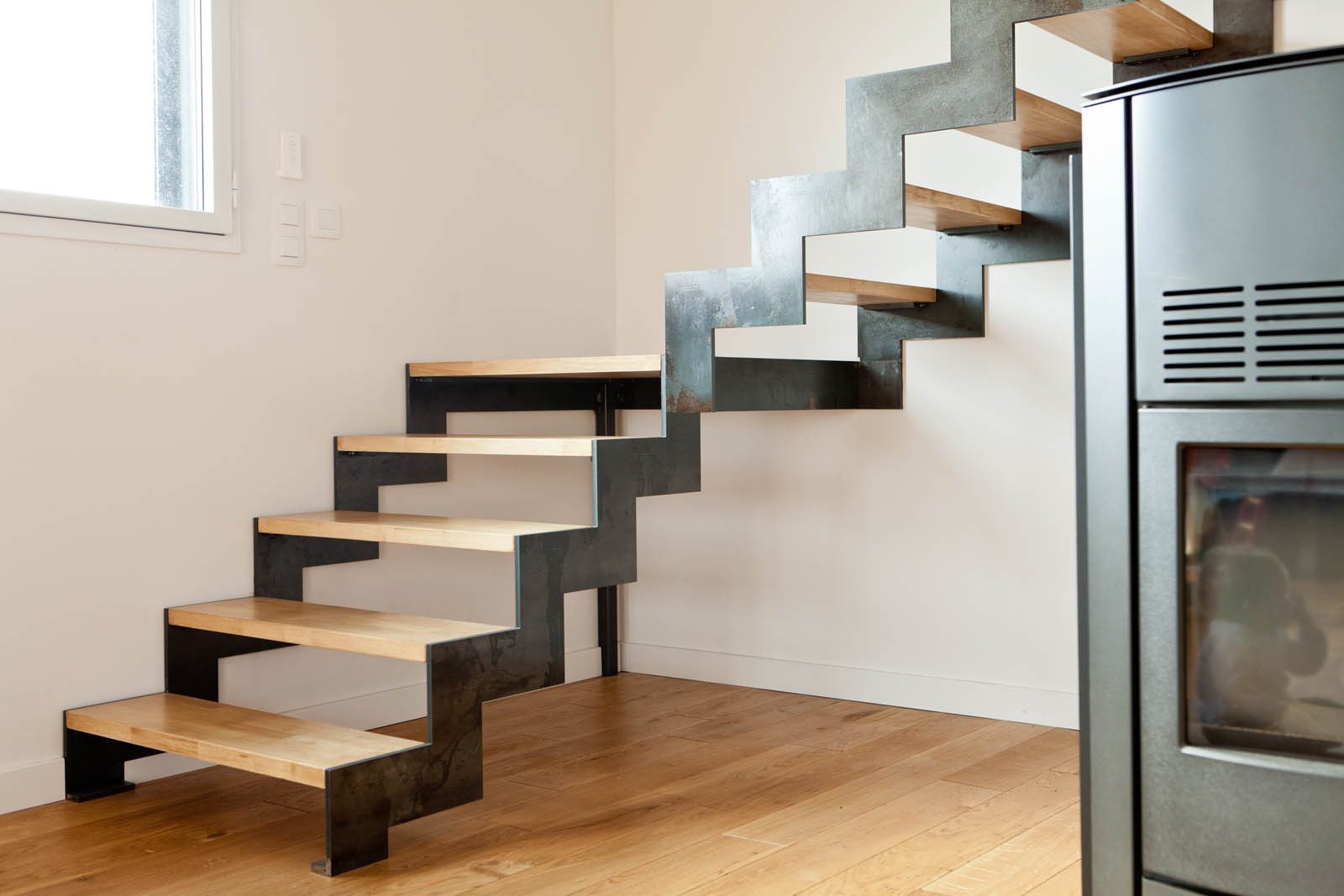 Escaliers quart tournant aux finitions plurielles : acier huilé et bois vernis, verre feuilleté, avec ou sans garde-corps…
