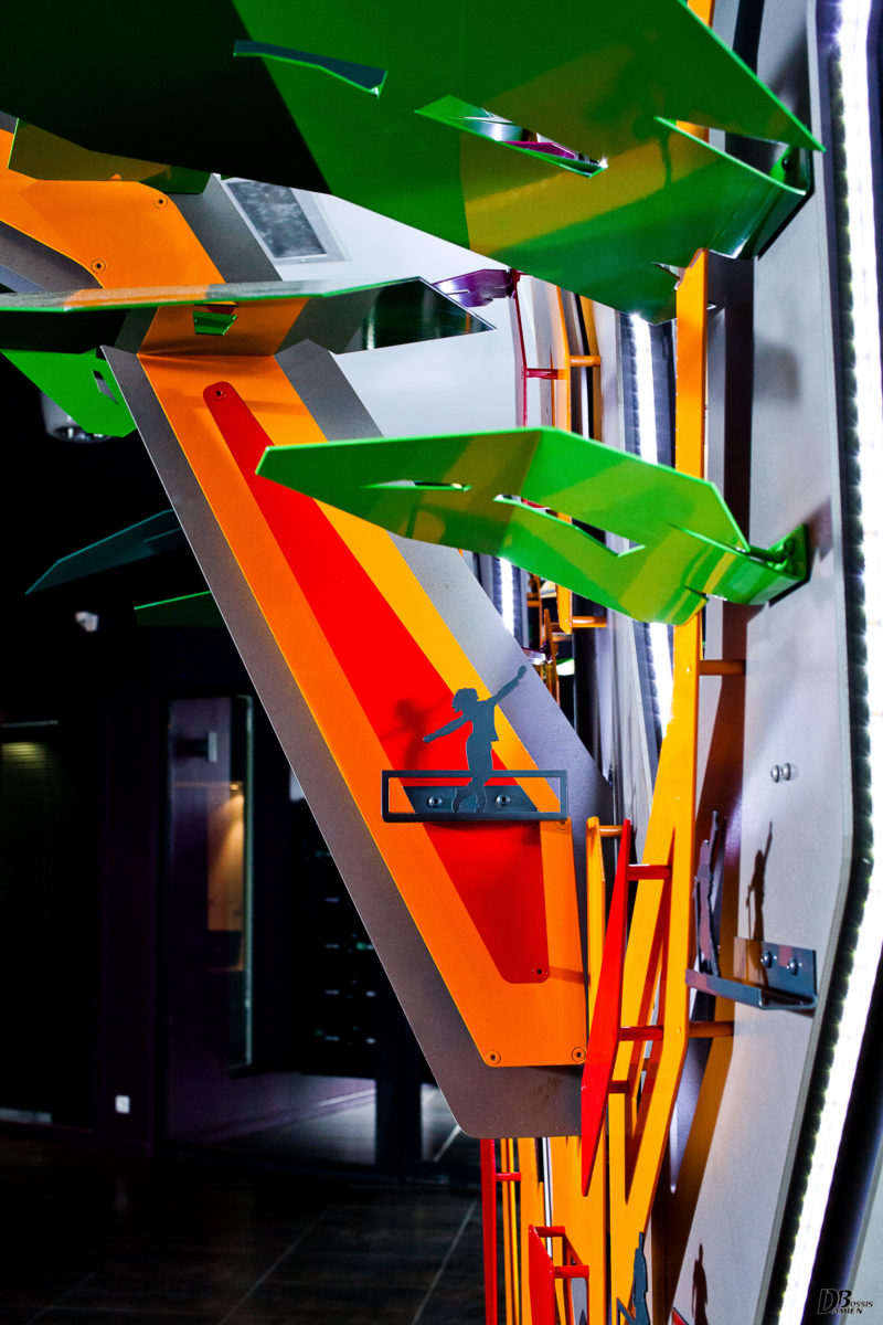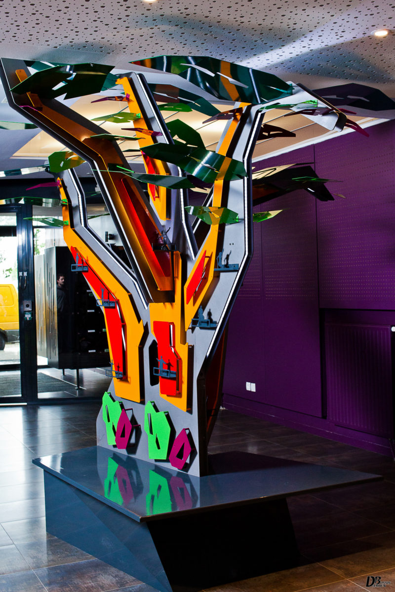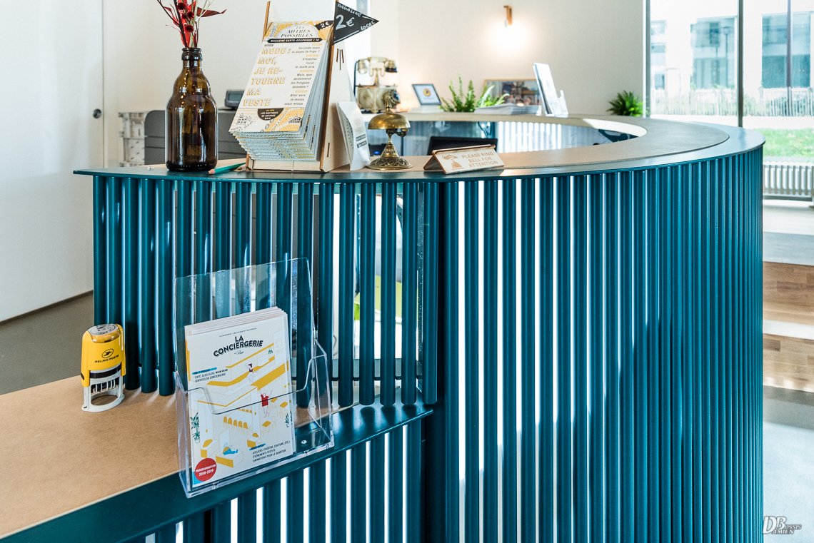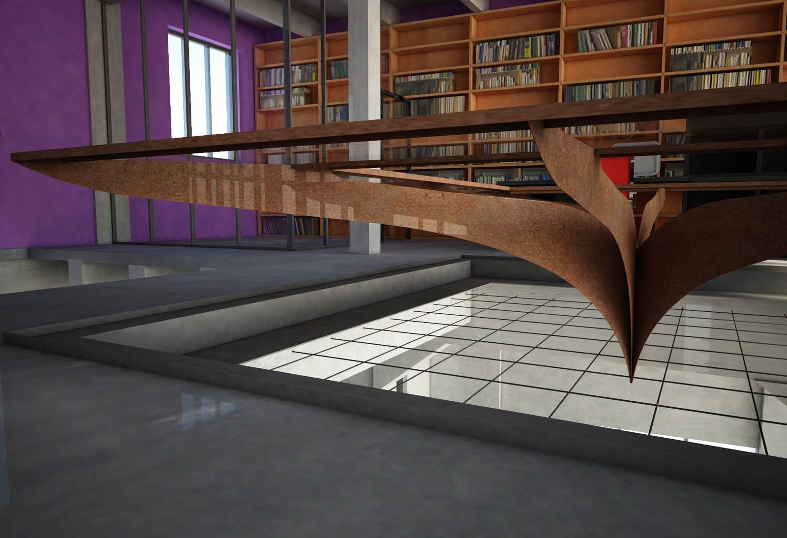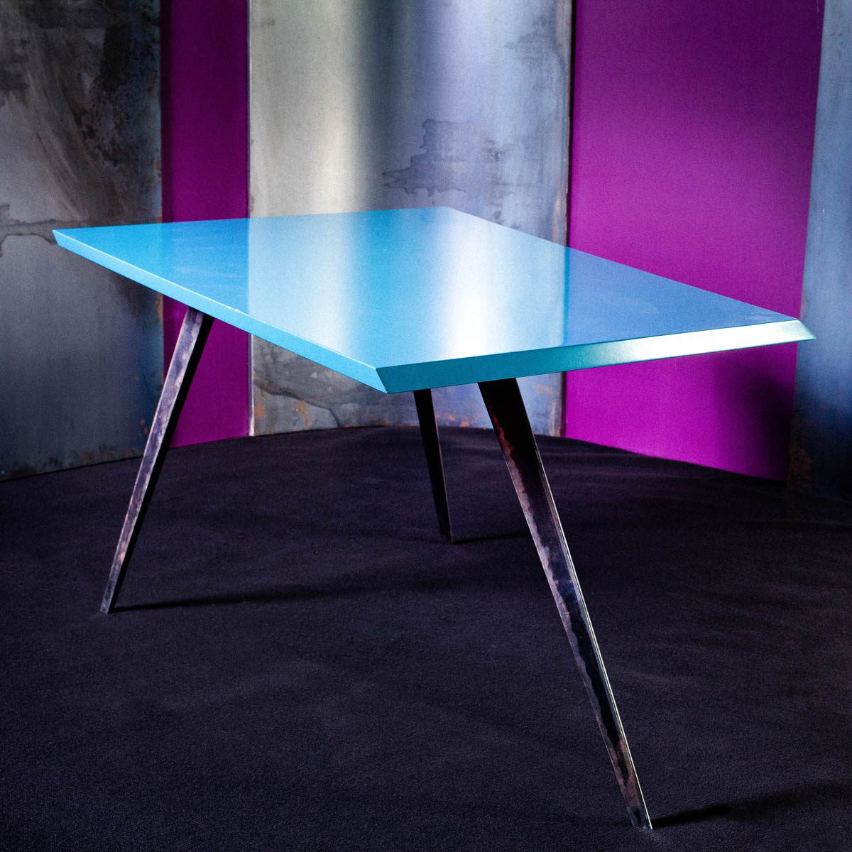 Mobilier de caractère, table de réunion suspendue bureaux au plateau médium laqué, verre sablé ou tout acier, bibliothèques et meubles sur-mesure…